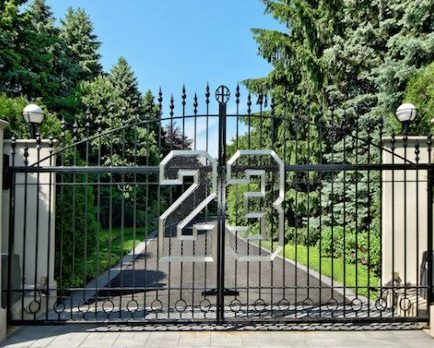 La intrarea pe proprietate, nici să vrei nu poți rata porțile pe care tronează numărul 23 – numărul tricoului de teren al lui Jordan, cu o însemnătate aparte pentru baschetbalist, care a stabilit de altfel ultimul preț al conacului la 14.855.000 de dolari, astfel încât cifrele adunate la un loc să însumeze exact 23, considerând probabil că numărul îi va purta la fel de mult noroc și în afara terenului de joc.